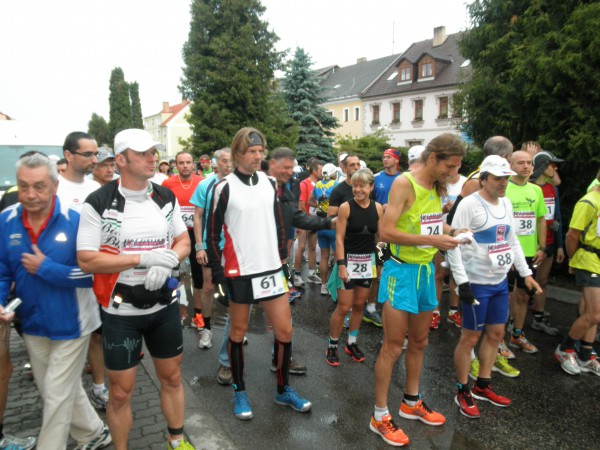Jirka slíbil, že první část pojede se mnou na kole. Je to taková smyčka do Nových hradů a přes Terčino údolí, která se na 19. km vrací do Stropnice. Počasí vypadá celkem rozumně a tak beru jen pás s kapsičkou. Na sebe vestičku, je celkem teplo a tak návleky nechávám na opasku. Přicházím na start, kde se pomalu shromažďuje stovka ultramaratonců. Zdravím Petra Ozogána, stavím se na lajnu kousek vedle Dana. Je trochu jiná váhová kategorie... Říkají nám, že na trati bude bláto. Ale to nemuseli řikat, to snad uvidim, ne? Popřejou nám hodně štěstí a odstartujeme přesně v půl šestý.