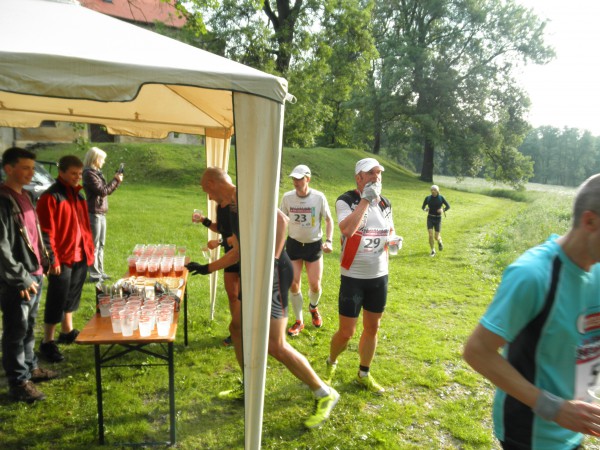 Na občerstvovačkách už zastavuju a dám řeč s obsluhou. Snažím se vtipkovat a trochu rozveselit je i sebe. Jim patří vděk za to, že se ve svým volným čase seberou a stráví den postáváním někde v lese a pozorováním zpocených a posmrkaných postav, jak se do sebe snaží dostat trochu tekutin a energie. A i těch pár slov a úsměvů mi vždycky dodá trochu energie na další úsek. Slupnu banán, vypiju vodu nebo colu, popřípadě trochu cihly s chlebem. Pokud někoho zajímá i výdej, tak do 50 km tak 3x čůrání a 2x No.2.